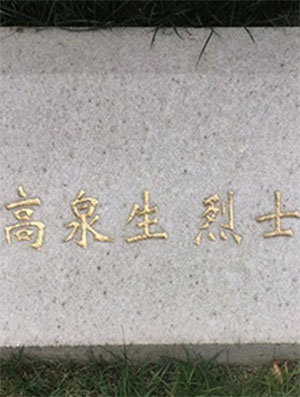 高泉生,原籍山東乳山,解放軍31軍91師272團(tuán)戰(zhàn)士。1949年5月,在解放上海戰(zhàn)役中犧牲?,F(xiàn)安葬于上海市閔行區(qū)烈士陵園。