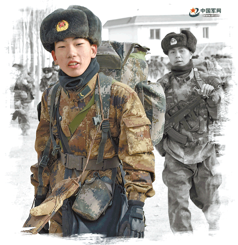 2016年12月,入伍3個多月的郭豪第一次參加冬季野營拉練。走在賀蘭山麓寒風(fēng)中,郭豪面帶微笑。
