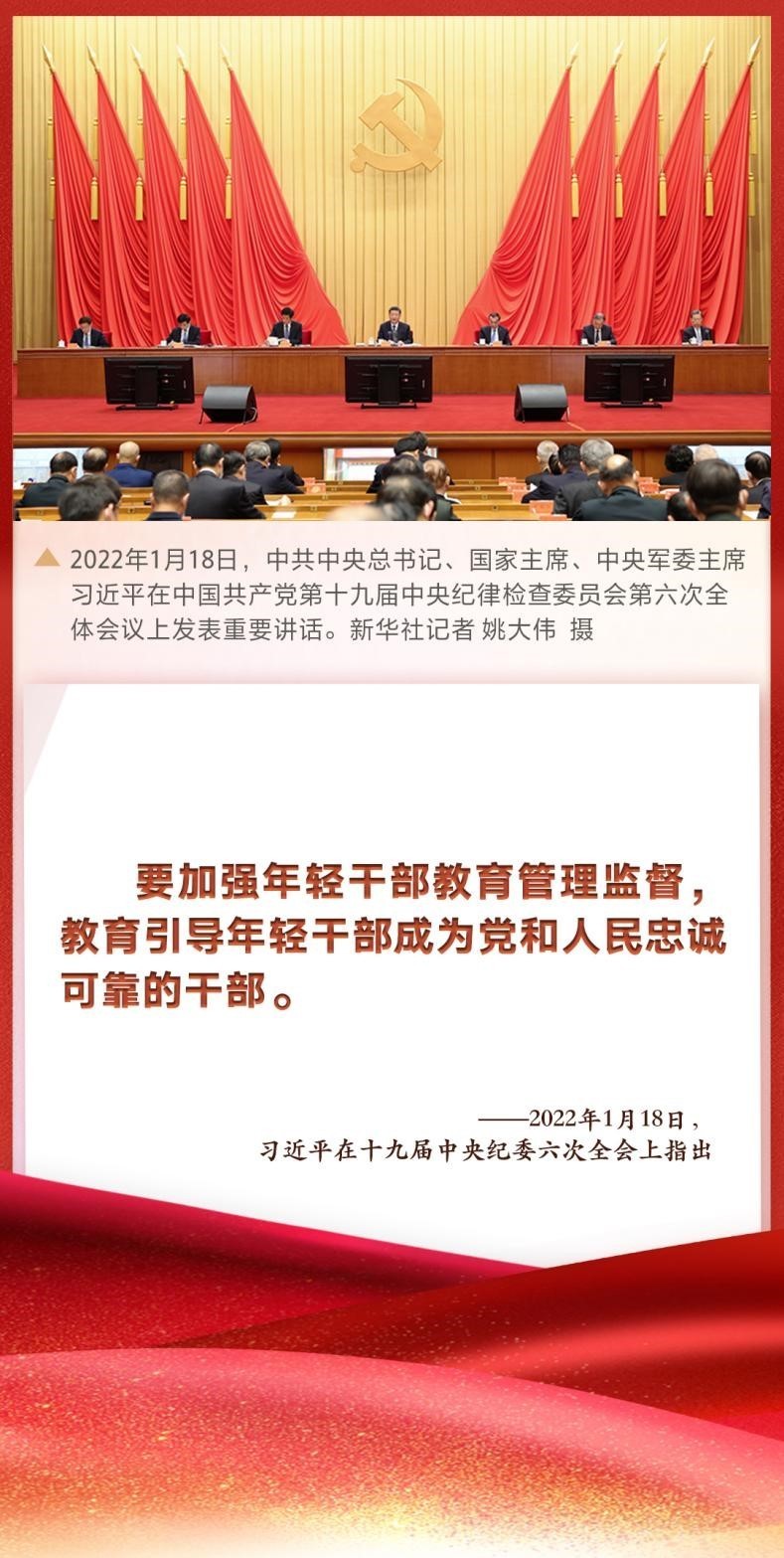 “要加強(qiáng)年輕干部教育管理監(jiān)督,教育引導(dǎo)年輕干部成為黨和人民忠誠可靠的干部?!敝泄仓醒肟倳?、國家主席、中央軍委主席習(xí)近平在十九屆中央紀(jì)委六次全會上發(fā)表重要講話,深刻總結(jié)新時(shí)代黨的自我革命的成功實(shí)踐,深刻闡述全面從嚴(yán)治黨取得的歷史性、開創(chuàng)性成就,產(chǎn)生的全方位、深層次影響,對堅(jiān)持不懈把全面從嚴(yán)治黨向縱深推進(jìn)、迎接黨的二十大勝利召開作出戰(zhàn)略部署。