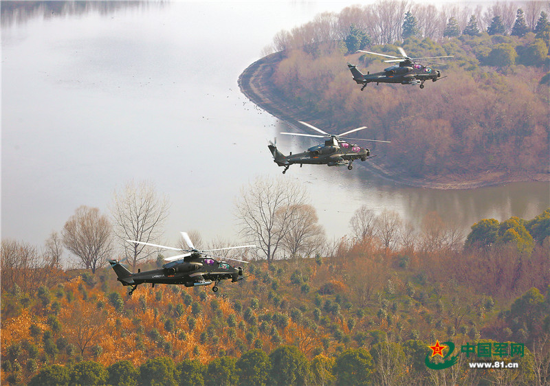 上圖:第72集團(tuán)軍某陸航旅組織直升機(jī)超低空編隊(duì)飛行訓(xùn)練,錘煉部隊(duì)實(shí)戰(zhàn)能力。解放軍報(bào)特約通訊員 張歡朋攝