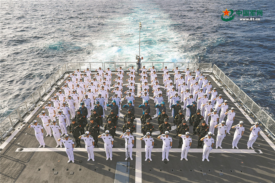 海軍第40批護航編隊舉行升旗儀式。楊 捷攝