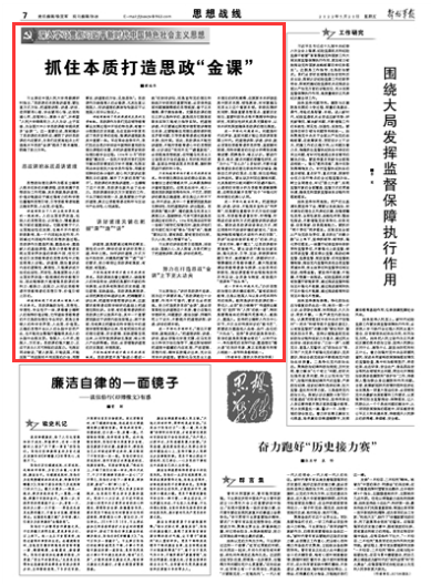 習(xí)主席在中國人民大學(xué)考察調(diào)研時指出,“思政課的本質(zhì)是講道理,要注重方式方法,把道理講深、講透、講活,老師要用心教,學(xué)生要用心悟,達到溝通心靈、啟智潤心、激揚斗志”,并希望“人民大學(xué)綿綿用力,久久為功,止于至善,為全國大中小學(xué)思政課教學(xué)提供更多‘金課’”。這一重要論述,深刻揭示了思政課的本質(zhì)所在,闡明了講好思政課的內(nèi)在要求,為我們在更高起點上打造高水平思政“金課”提供了根本遵循,明確了努力方向。