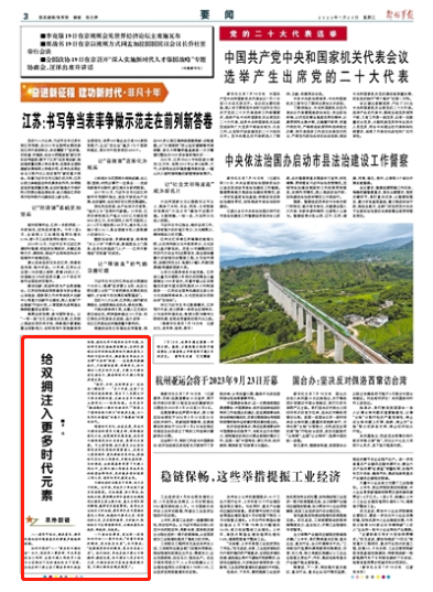 如何開展好“八一”前后的雙擁活動(dòng)?近日,退役軍人事務(wù)部、中央軍委政治工作部、全國雙擁工作領(lǐng)導(dǎo)小組辦公室聯(lián)合下發(fā)的通知給出了答案:各地各部門要主動(dòng)了解駐軍部隊(duì)?wèi)?zhàn)備訓(xùn)練、建設(shè)改革中遇到的實(shí)際問題,及時(shí)研究制定措施幫助解決;各部隊(duì)要結(jié)合實(shí)際創(chuàng)新拓展新時(shí)代擁政愛民工作的內(nèi)容和形式,推動(dòng)落實(shí)軍地互辦實(shí)事“雙清單”制度……這些要求提醒我們,只有瞄準(zhǔn)急需、創(chuàng)新形式,給雙擁注入更多時(shí)代元素,才能讓雙擁活動(dòng)充滿活力,推動(dòng)新時(shí)代雙擁工作高質(zhì)量發(fā)展。