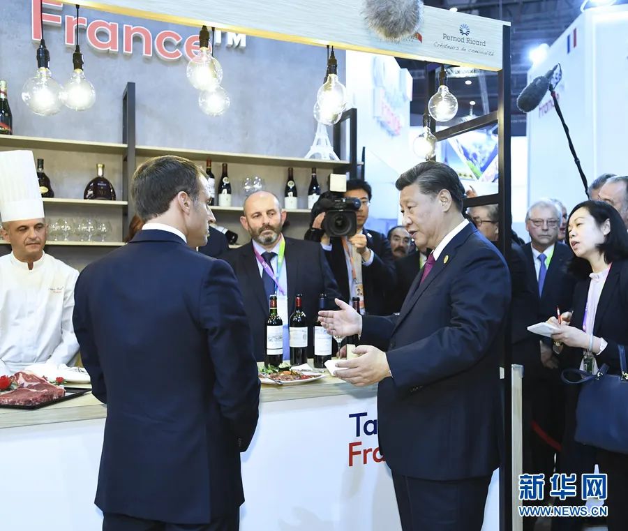 開幕式后,習(xí)近平在馬克龍陪同下來到法國館。馬克龍請(qǐng)習(xí)近平品嘗法國紅酒和牛肉食品。習(xí)近平說:“法國牛肉、紅酒在中國很受歡迎?!泵鎸?duì)圍攏在身邊的20多位法國企業(yè)家,習(xí)近平發(fā)出誠摯邀請(qǐng):“歡迎法國企業(yè)到中國來,中國市場(chǎng)大?!?年后的今天,中法雙向投資快速增長,雙邊貿(mào)易額已超800億美元,創(chuàng)歷史新高。