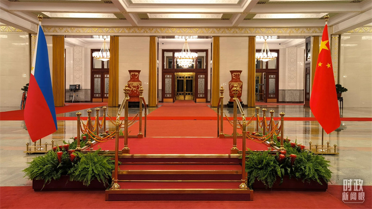 △會(huì)談現(xiàn)場(chǎng)的中菲兩國(guó)國(guó)旗。(總臺(tái)央視記者石丞拍攝)