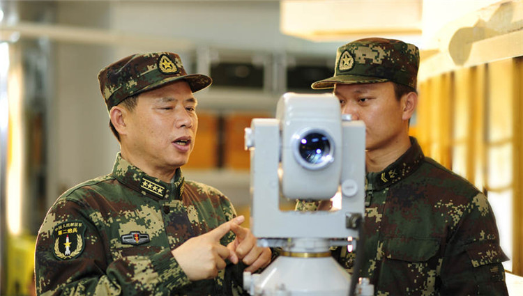 你也許早就聽(tīng)說(shuō)過(guò)他的故事,第二炮兵某導(dǎo)彈旅高級(jí)工程師38載堅(jiān)守深山導(dǎo)彈發(fā)射場(chǎng)。圖為譚清泉(左)講解專業(yè)知識(shí)。