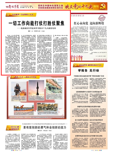 政治工作也必須向能打仗、打勝仗聚力聚焦。北部戰(zhàn)區(qū)空軍政治工作部領(lǐng)導(dǎo)介紹說(shuō),政治工作是我軍的生命線,政治工作效能要用能打仗、打勝仗來(lái)檢驗(yàn)。十九大召開(kāi)后,政治工作部門(mén)通過(guò)各種舉措,確保十九大精神第一時(shí)間傳達(dá)到基層,融入崗位戰(zhàn)位,融入戰(zhàn)斗力建設(shè)。