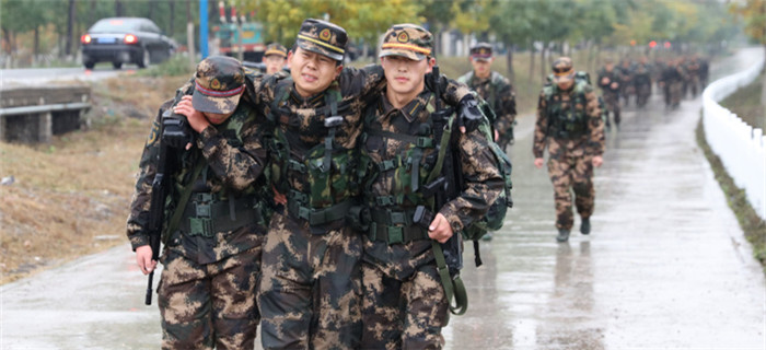 中國武警網(wǎng)訊(馬戈、王保穆)11月上旬,北京北郊,秋雨綿綿。武警北京指揮學院組織2015屆國防生長途奔襲課目演練,400余名國防生冒雨持續(xù)行軍近15個小時。他們大多都是“95后”,剛踏出中國人民大學等高校校門,從未接受過系統(tǒng)的軍事訓練,而現(xiàn)在,他們就要挑戰(zhàn)自我!
