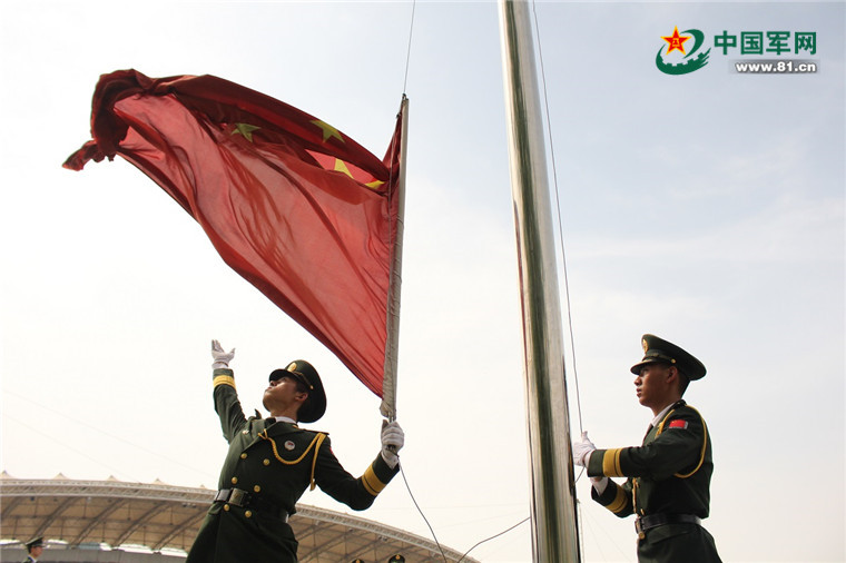 氣宇軒昂、身姿矯健的國防生國旗護衛(wèi)隊和彩旗隊的同志們早早來到體育場,他們目光如炬,神情堅定。隨著校領(lǐng)導(dǎo)“運動會開幕”一聲令下,國旗護衛(wèi)隊邁著整齊的步伐進入觀眾的視線,他們步履鏗鏘、精神抖擻,觀眾報以熱烈的掌聲。隨后,彩旗隊也在師生們的歡呼聲中走過主席臺。隨著“升國旗,奏國歌”的號令,國旗手動作行云流水,灑脫有力,在雄壯的國歌聲中將國旗冉冉升起。