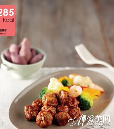 牛肉丸配青蔬菜