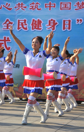 當(dāng)日是我國(guó)第六個(gè)“全民健身日”,吉林省暨長(zhǎng)春市2014年“全民健身日”活動(dòng)在長(zhǎng)春市綠園區(qū)錦江廣場(chǎng)舉行,來(lái)自各界的近4000名群眾參與健身活動(dòng),現(xiàn)場(chǎng)進(jìn)行了太極拳、腰鼓舞、輪滑、扭秧歌等多項(xiàng)活動(dòng)。
