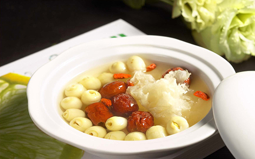 蓮子:性平、味甘,有養(yǎng)心、益腎、健脾作用。宋代《圖經(jīng)本草》中記載:“蓮子搗碎和米作粥飯食,輕身益氣,令人強健?!彼?,凡癌癥患者以及放療化療后體質(zhì)衰弱時,均宜常食蓮子。近代藥理發(fā)現(xiàn),蓮子所含的氧化黃心樹寧堿有抑制鼻咽癌的作用。對于婦女子宮癌赤白帶下者,有人用蓮子(去心)、芡實(去殼)各60克,以適量糯米煮粥,再加紅糖服用。肺癌患者低熱、干咳以及放療化療后體弱者,民間喜用蓮子同百合、山藥、銀耳、冰糖煮食。