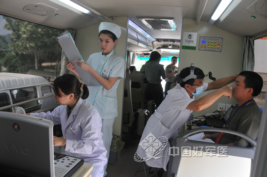 官兵在特勤醫(yī)療巡診車上接受體檢(莫鵬攝)
