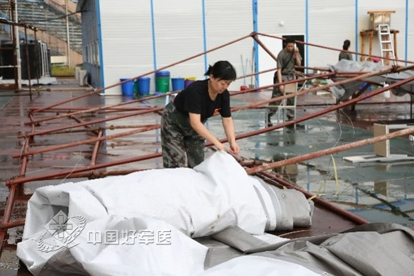 剛來的第二天清晨,一陣狂風驟雨將醫(yī)療隊的露天餐廳沖塌了。景熙發(fā)現(xiàn)災情后,第一時間沖了出來,幫助男士們一起整理廢墟,忙著災后重建,和大家一起揮汗于利比里亞的熱土之上。