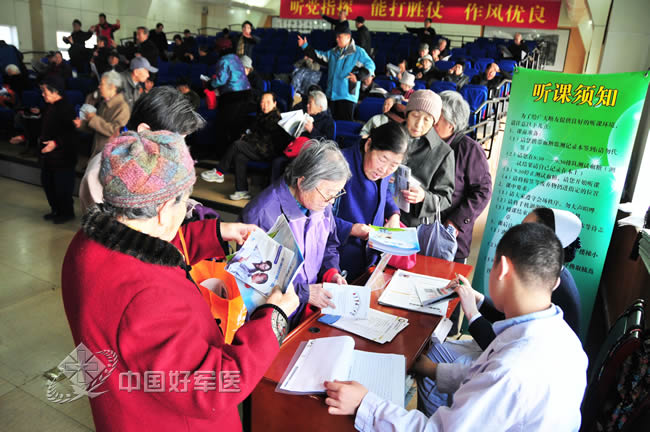 老人們排隊領(lǐng)取健康小冊子(肖小飛攝)