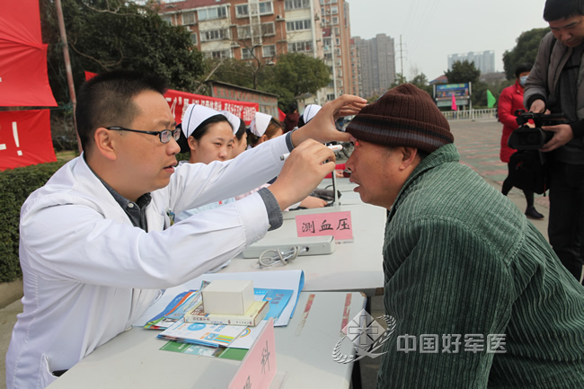 在錫燈家舍小區(qū)困難群眾吳大爺?shù)募依铮?01醫(yī)院普外科方征醫(yī)生領(lǐng)著護士一起為吳大爺仔細檢查身體。吳大爺年紀大了,又患重病,行動很不方便,于是,醫(yī)院決定帶上藥箱上門服務(wù),吳大爺?shù)睦习楦袆拥卣f:“101醫(yī)院一直是我們老百姓的救命神,解放軍就是棒!”