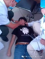 只見小林突然出現(xiàn)四肢抽搐、牙關(guān)咬緊等癥狀,這時,細心的吳康注意到小林嘴角流出的分泌物中有血絲,他推測可能患者咬到舌頭了,情急之下他立刻用手指去將小林的牙齒強制掰開,沒想到被小林重重地咬了一口,疼得吳康眼淚都差點流出來了。由于急著救人,吳康顧不上疼痛,趕緊在同事的幫助下找來專業(yè)的開口器將小林的上下牙齒打開,確保舌頭既不被咬傷,又要防止舌頭后墜的可能,隨時保持呼吸道的通暢。緊接著,吳康又找來吸痰器,將小林口中的分泌物吸出,防止進入氣管,最后再接上鼻導(dǎo)管進行供氧。