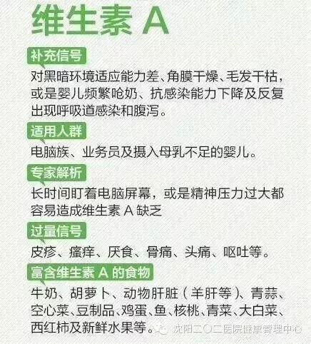 ①角膜干燥、毛發(fā)干枯:缺維生素A;②經(jīng)常性的唇、舌、口腔潰瘍,視物模糊,皮膚粗糙:缺維生素B;③乏力、食欲差、體重減輕、性情暴躁、關(guān)節(jié)疼痛,牙齦出血:缺維生素C……看圖對照看看你缺哪一種~~