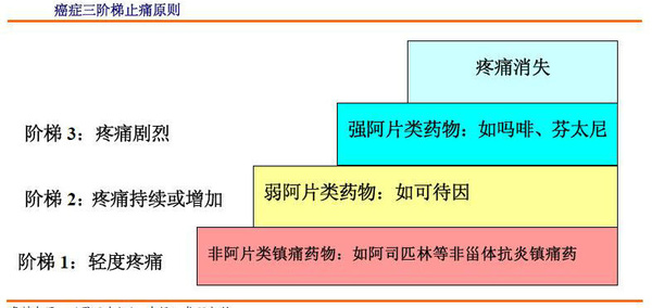 1986世界衛(wèi)生組織推薦三階梯止痛法,我國衛(wèi)生部藥政管理局于1994年公布的《癌癥病人三階梯止痛療法的指導(dǎo)原則》是癌痛藥物治療必須遵守的五大原則之一,即在對癌痛的性質(zhì)程度和原因作出正確評估后,適當(dāng)?shù)剡x擇相應(yīng)的鎮(zhèn)痛劑,對于輕度疼痛的患者應(yīng)主要選用解熱鎮(zhèn)痛劑類的止痛劑;若為中度疼痛應(yīng)選用弱阿片類藥物;若為重度疼痛應(yīng)選用強(qiáng)阿片類藥物。