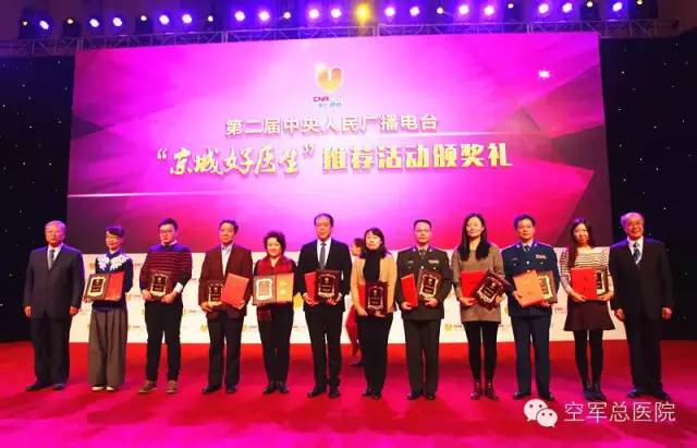 2015年12月8日下午,第二屆中央人民廣播電臺(tái)“京城好醫(yī)生”推薦活動(dòng)頒獎(jiǎng)禮暨首屆“央廣健康”論壇在北京圓滿落幕。北京“三甲”醫(yī)院的11位院長(zhǎng)以推進(jìn)健康中國(guó)建設(shè)和深化醫(yī)療改革為主題進(jìn)行了主旨演講和討論;20位“金牌好醫(yī)生”、33位“優(yōu)秀好醫(yī)生”和32家醫(yī)院的“金牌伯樂(lè)獎(jiǎng)”“金牌組織獎(jiǎng)”“金牌合作獎(jiǎng)”隆重揭曉。空軍總醫(yī)院獲得“金牌伯樂(lè)獎(jiǎng)”殊榮,胸外科主任朱彥君和肝膽外科主任張洪義分別獲得“金牌好醫(yī)生”“優(yōu)秀好醫(yī)生”榮譽(yù)稱(chēng)號(hào)。