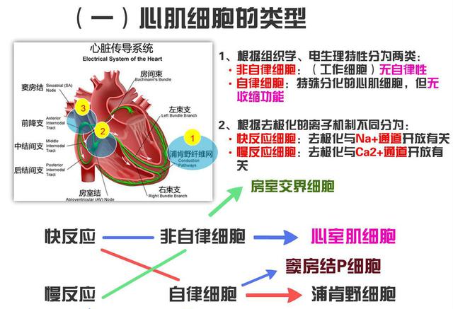 心臟傳導(dǎo)系統(tǒng)在右心房的最上端,有一小團細胞,叫做竇房結(jié)細胞,這個部位就叫做竇房結(jié)。竇房結(jié)細胞本身能一次一次、不停、有節(jié)奏地放電(每分鐘60~100次)。放出的電向周圍、最終向下傳導(dǎo),也就是先傳遍右心房和左心房,然后到達心房和心室的交界處一個叫房室結(jié)的地方,然后再傳向右心室和左心室。竇房結(jié)就像一個發(fā)電廠,房室結(jié)像一個變電站,肌肉細胞則是電動機,它們之間由電線連接起來。電線和變電站指的就是醫(yī)學(xué)上說的心臟傳導(dǎo)系統(tǒng)。如果發(fā)電廠、電線和變電站都正常,才能保證電動機正常工作。