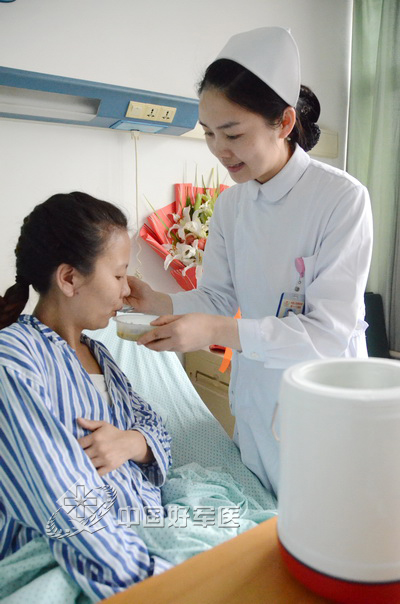 鴿子湯對術(shù)后傷口愈合效果好,護(hù)理部主任黃美紅專門托人從500多公里外的親戚家里買來鴿子燉湯。擔(dān)心章映娟用手喝湯牽扯傷口,護(hù)士盛好湯在嘴邊吹涼后,一勺一勺喂她。