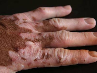 ④白斑邊緣模糊不清。白斑色淺淡邊緣不清,患者很可能是處于進展期,原有白斑可較迅速擴散,也可有新的白斑出現。
