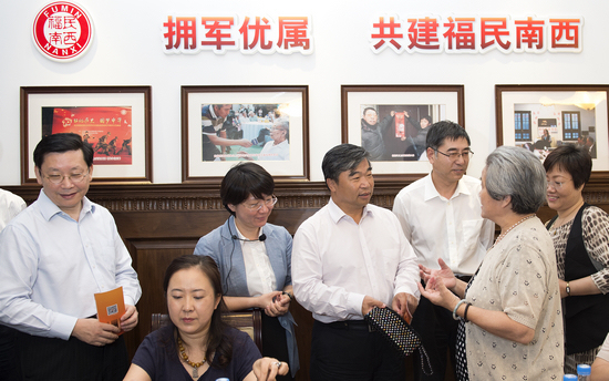 調(diào)研督導(dǎo)組先后考察了靜安區(qū)南京西路街道“優(yōu)撫之家”、徐匯區(qū)雙擁文化廣場(chǎng)和龍南少年軍校等軍地基層單位,查閱雙擁臺(tái)帳資料,召開市、區(qū)雙擁工作匯報(bào)會(huì),全面了解上海市雙擁模范城(縣)創(chuàng)建工作情況。調(diào)研督導(dǎo)組還專程前往龍華烈士陵園參觀著名抗日英烈和英雄群體事跡展,并向烈士墓敬獻(xiàn)鮮花。