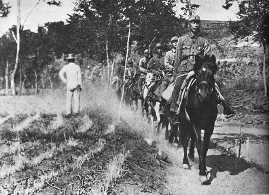 1937年聶榮臻率領(lǐng)軍區(qū)機(jī)關(guān),由五臺(tái)山向阜平進(jìn)發(fā)