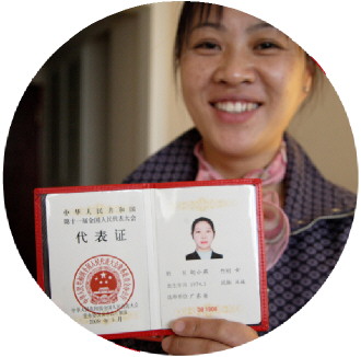 2008年3月14日,首批農民工代表胡小燕展示代表證。 CFP供圖