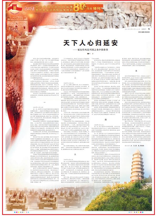 在波瀾壯闊的中國抗戰(zhàn)乃至世界反法西斯戰(zhàn)爭大棋局中,延安——這座陜北高原的偏隅小城,之所以能成為世人矚目的焦點,不是因為這里地沃水美,而在于為全民族抗戰(zhàn)提供了正確的戰(zhàn)略指導(dǎo)、提供了豐富的精神武器。中國共產(chǎn)黨率領(lǐng)人民軍隊從南昌城頭、長征路上一路走來形成的好作風(fēng)、好傳統(tǒng),如同不竭的力量之源,支撐著這座中國革命的燈塔,在抗戰(zhàn)的漫漫長夜中放射出無比耀眼的真理光芒。