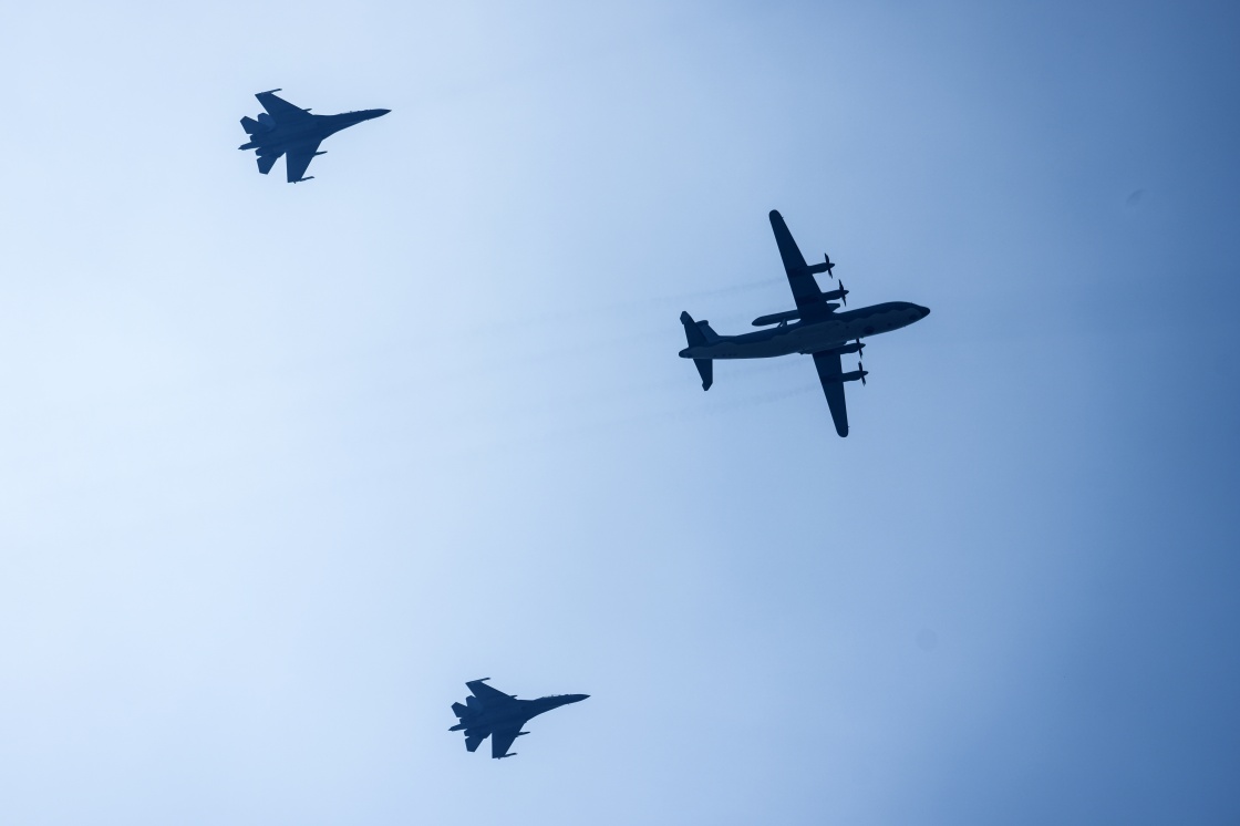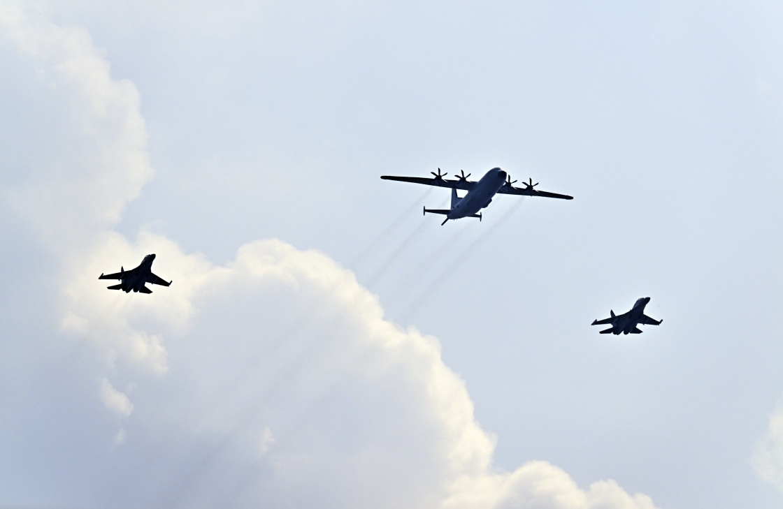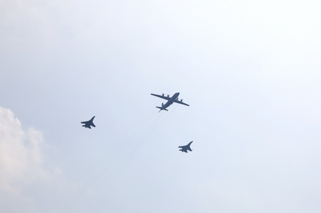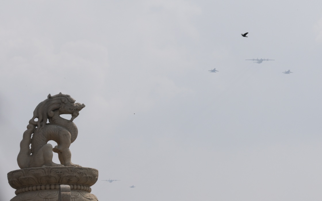 9月3日,紀(jì)念中國人民抗日戰(zhàn)爭暨世界反法西斯戰(zhàn)爭勝利80周年大會(huì)在北京隆重舉行。這是特種機(jī)梯隊(duì)從北京城區(qū)上空飛過。