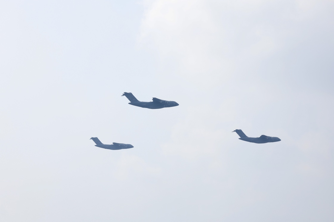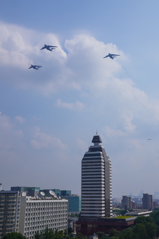 9月3日,紀念中國人民抗日戰(zhàn)爭暨世界反法西斯戰(zhàn)爭勝利80周年大會在北京隆重舉行。這是在北京天壇公園拍攝的運輸機梯隊。