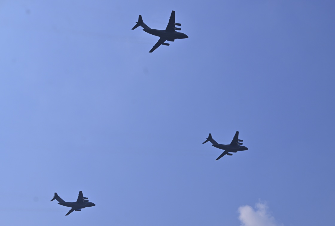 9月3日,紀念中國人民抗日戰(zhàn)爭暨世界反法西斯戰(zhàn)爭勝利80周年大會在北京隆重舉行。這是運輸機梯隊。