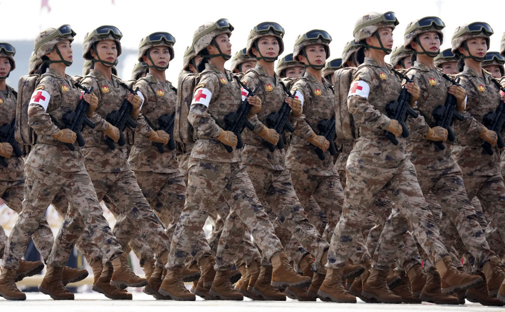 這是聯(lián)勤保障部隊(duì)方隊(duì)接受檢閱