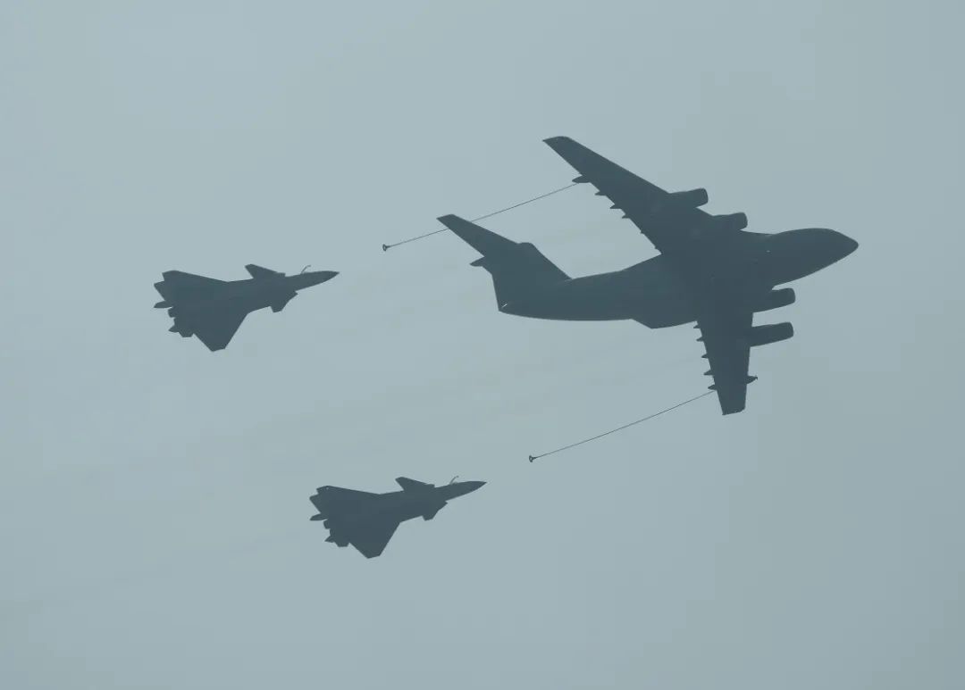 9月3日,紀(jì)念中國(guó)人民抗日戰(zhàn)爭(zhēng)暨世界反法西斯戰(zhàn)爭(zhēng)勝利80周年大會(huì)在北京隆重舉行。這是加受油機(jī)梯隊(duì)接受檢閱。新華社記者 張玉薇 攝