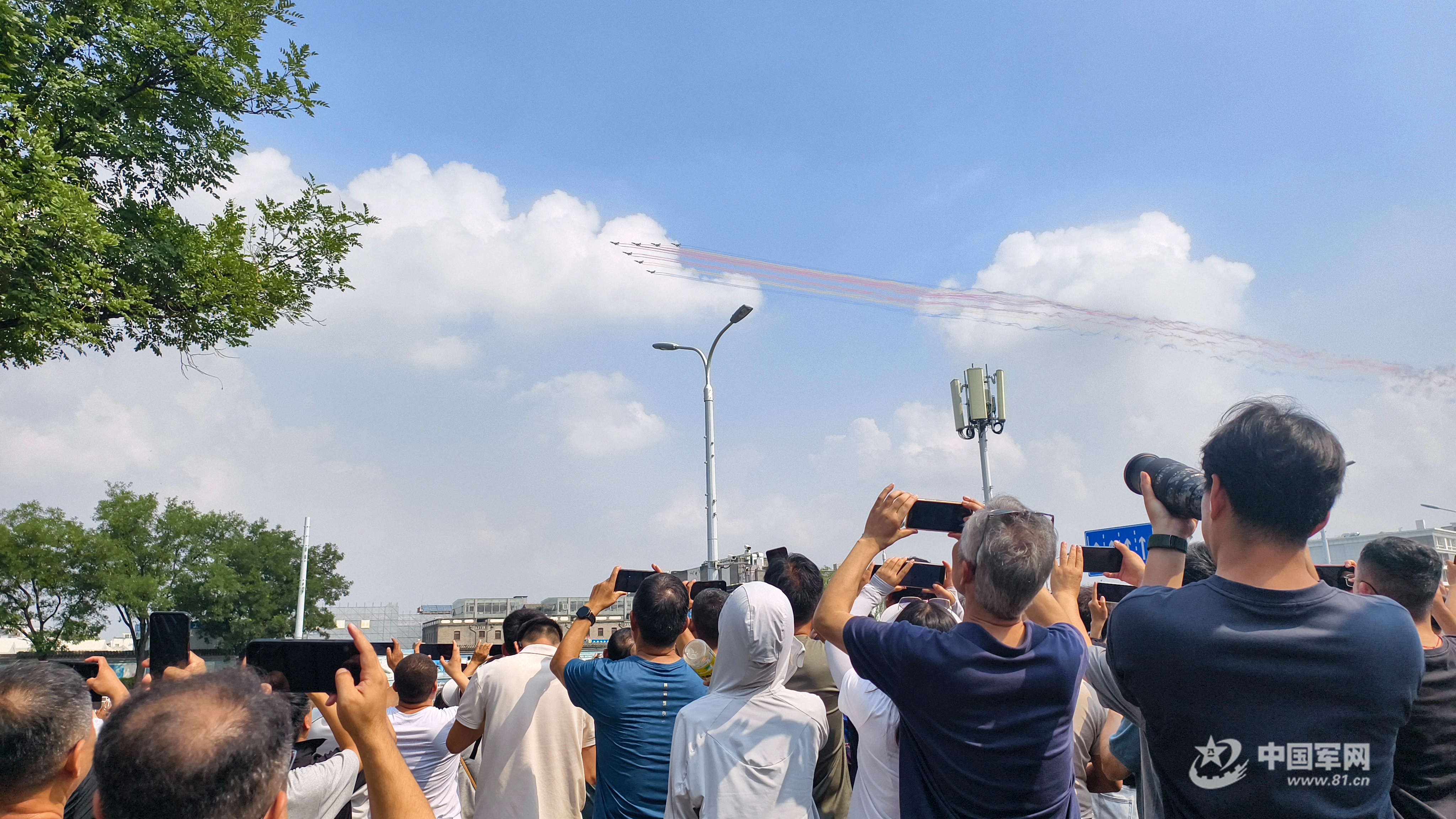 9月3日上午,紀(jì)念中國(guó)人民抗日戰(zhàn)爭(zhēng)暨世界反法西斯戰(zhàn)爭(zhēng)勝利80周年大會(huì)在北京天安門廣場(chǎng)隆重舉行。受閱機(jī)群曳彩如虹、聲震云霄,首都各界群眾紛紛走上街頭,用相機(jī)定格這激動(dòng)人心的瞬間。(中國(guó)軍網(wǎng)記者 張智程、孫悅 攝影)