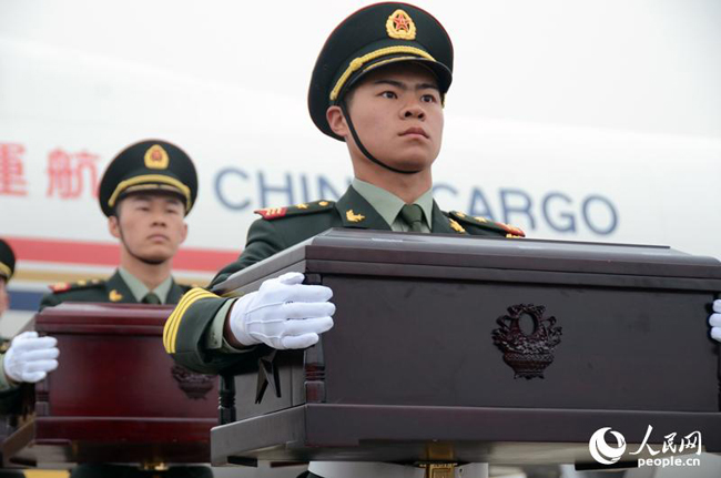 將志愿軍烈士的遺骸抱在胸前。張悅攝
