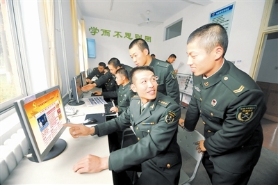 戰(zhàn)士眼中的“牛連長”不姓牛,叫韓慶波。2012年11月21日,我們走進(jìn)濟(jì)南軍區(qū)某機(jī)步旅“沙家浜連”,見識了這位官兵稱道的“牛連長”。他正在部隊(duì)局域網(wǎng)上輔導(dǎo)戰(zhàn)士學(xué)習(xí)十八大精神。