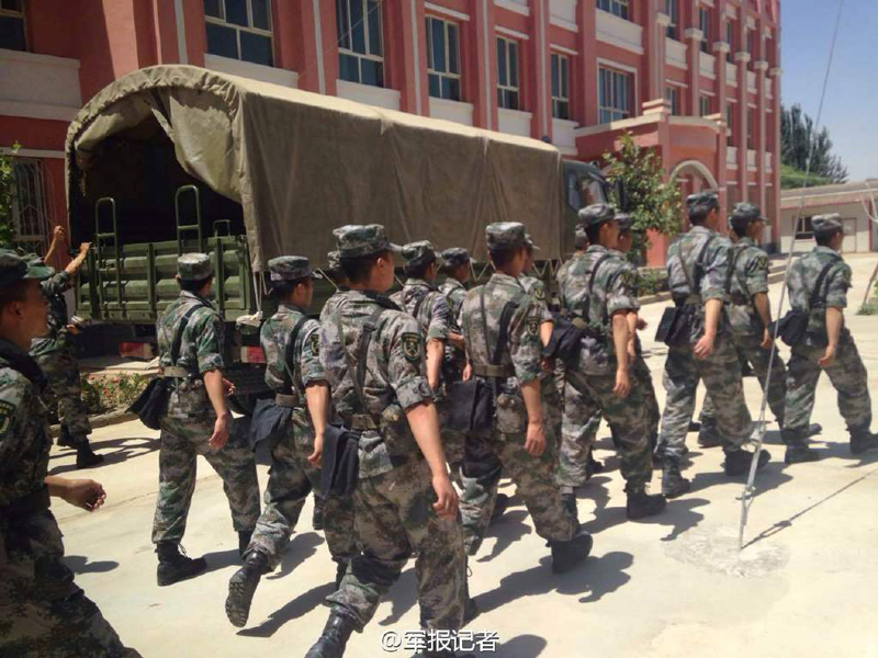 和田軍分區(qū)墨玉縣人武部55名官兵今日下午出發(fā)馳援災(zāi)區(qū),至此南疆軍區(qū)共出動官兵和民兵670人,參加救災(zāi)。(王寧 孫興維)