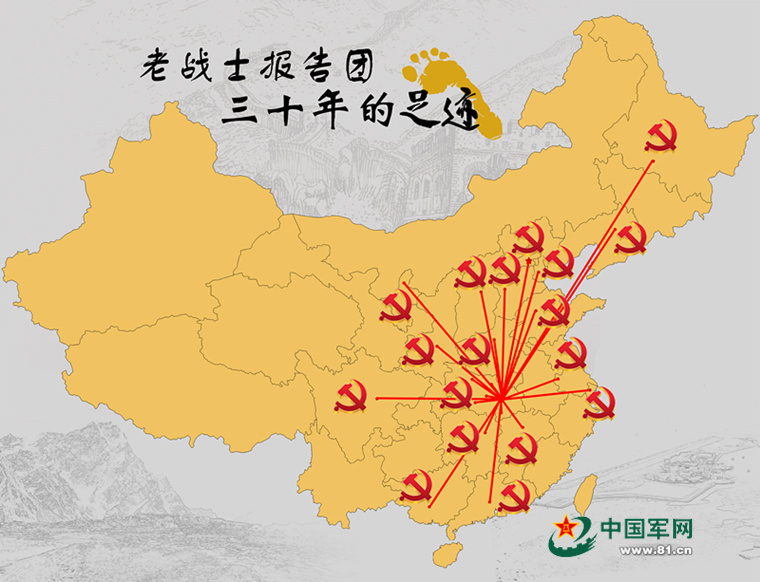 30年來,報告團足跡遍布于北京、天津、上海、廣東等全國20多個省、市、自治區(qū),他們不僅走訪各地黨政機關、企事業(yè)單位和大中小學,在少管所、監(jiān)獄等單位也能看到他們宣講黨的創(chuàng)新理論,開展革命傳統(tǒng)教育的身影,共作報告3400余場,聽眾累計達220余萬人次。