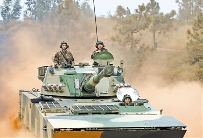 王銳(左二)正在指揮戰(zhàn)車進行演練。記者 王雁翔 攝