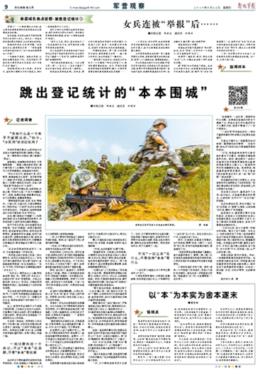 被“舉報”的女兵連成了樣板。機關以女兵連為試點,加強基層各類登記統(tǒng)計的規(guī)范化落實,把“編外”的“本本”徹底清理了一次,把拆分的“本本”合并,把不符合規(guī)定的登記統(tǒng)計廢止,叫停為迎檢突擊“補本”等行為,建立以工作實績?yōu)闃藴实脑u價體系……