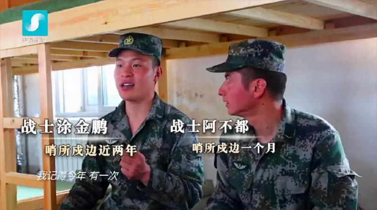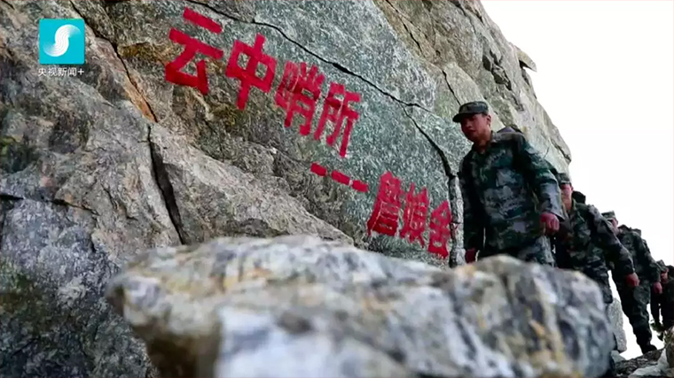 以前我們只有在巖石壁上畫的一面國旗,班長跟我們商量說整個旗桿,鋼管是從我們另外一個陣地上抬過來的,戰(zhàn)友們一起拉繩子、編繩子、鉆洞,把旗桿慢慢拉起來,然后把國旗掛上去?,F(xiàn)在我們可以看見那個聳立起來的國旗,心里特別驕傲,特別自豪!
