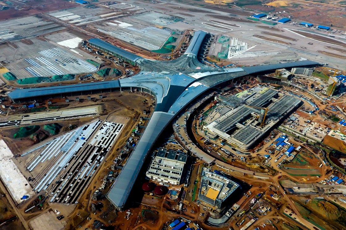 5月7日無人機拍攝的位于膠州市的建設(shè)中的青島膠東國際機場。新華社記者 郭緒雷 攝
