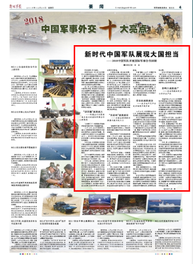 回首過去這一年,在習(xí)近平新時代中國特色社會主義思想引領(lǐng)下,新時代中國國際軍事合作開拓進取、銳意創(chuàng)新,亮點紛呈,為全面建成世界一流軍隊、實現(xiàn)中國夢強軍夢,推動構(gòu)建新型國際關(guān)系和人類命運共同體作出新的貢獻。請關(guān)注今日《解放軍報》的文章——