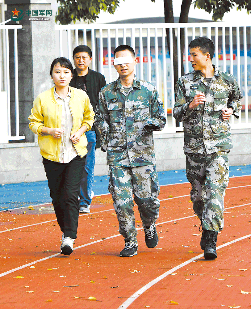 杜富國在妻子和戰(zhàn)友陪伴下堅持跑步鍛煉。