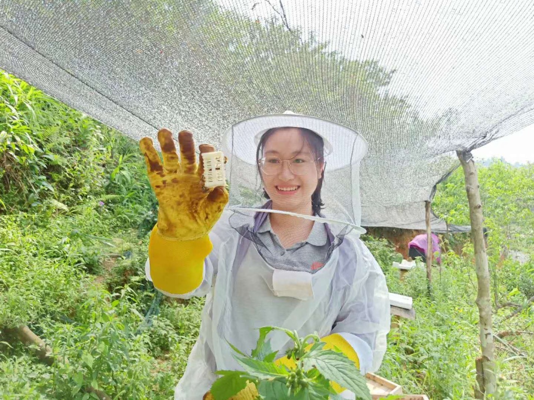 黃文秀到外村考察養(yǎng)蜂產(chǎn)業(yè),計(jì)劃將養(yǎng)蜂技術(shù)引到百坭村(資料照片)。新華社發(fā)(樂(lè)業(yè)縣宣傳部供圖)