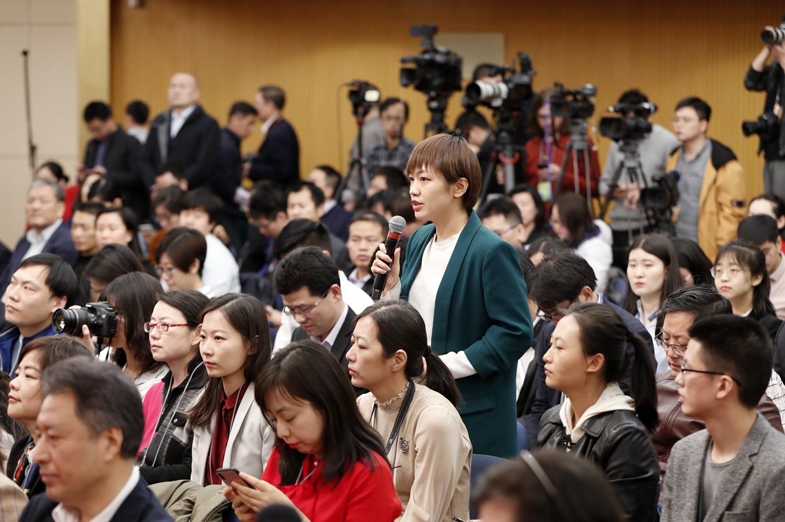 3月11日,十三屆全國人大二次會議新聞中心舉行記者會,邀請國家市場監(jiān)督管理總局局長張茅、國家藥品監(jiān)督管理局局長焦紅、國家知識產(chǎn)權(quán)局局長申長雨就“加強(qiáng)市場監(jiān)管 維護(hù)市場秩序”相關(guān)問題回答中外記者提問。這是記者在提問。新華社記者 沈伯韓 攝