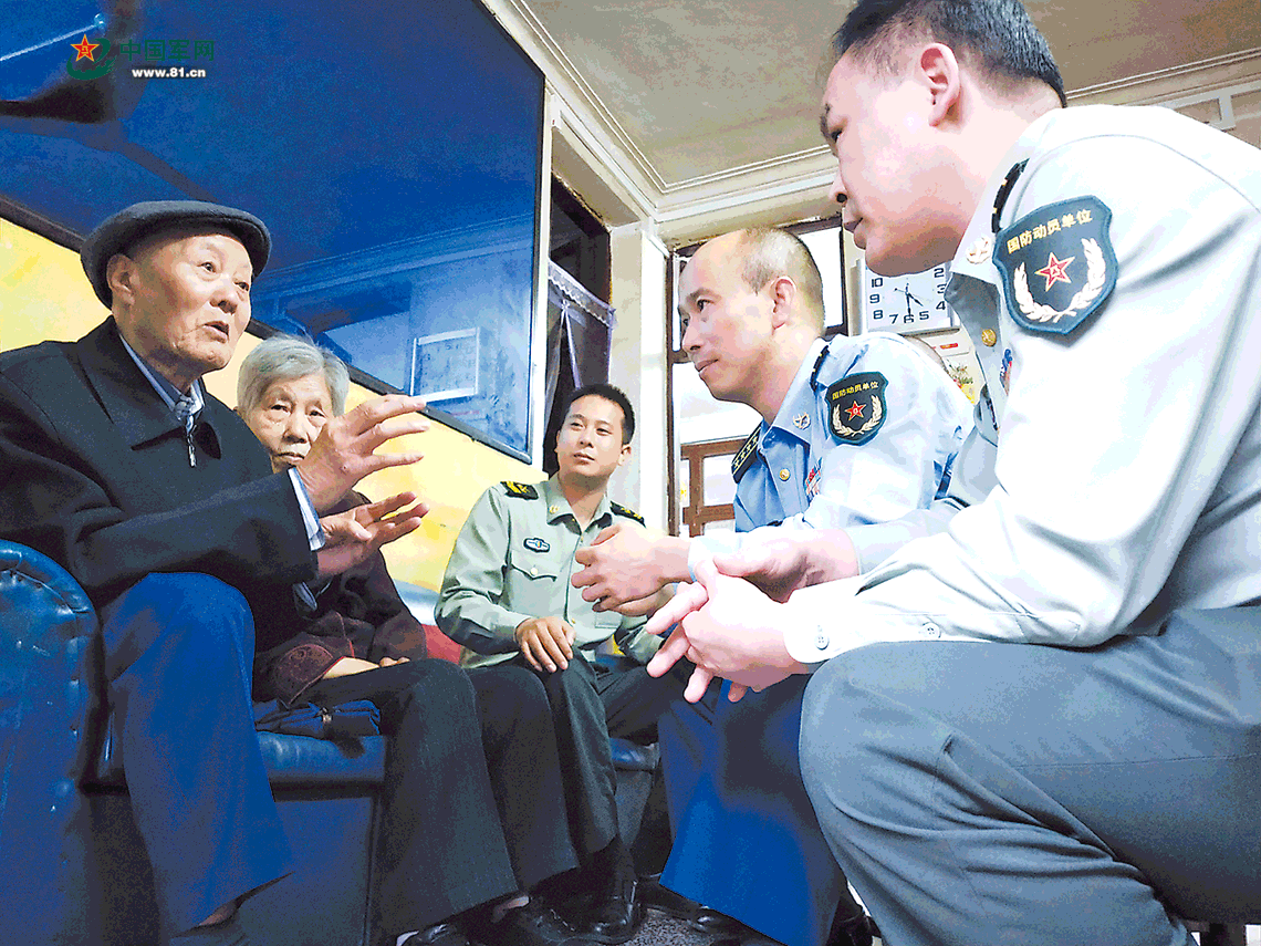 張富清向前來看望他的官兵,講述當年他和戰(zhàn)友英勇戰(zhàn)斗的故事。